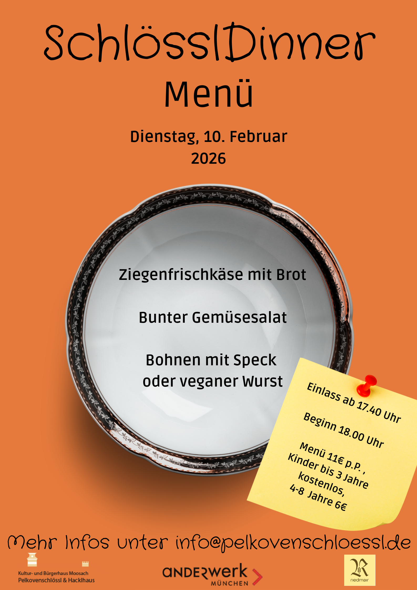 Einlass zwischen 17.40 und 17.50 Uhr I Essen von 18 – 19.30 Uhr.